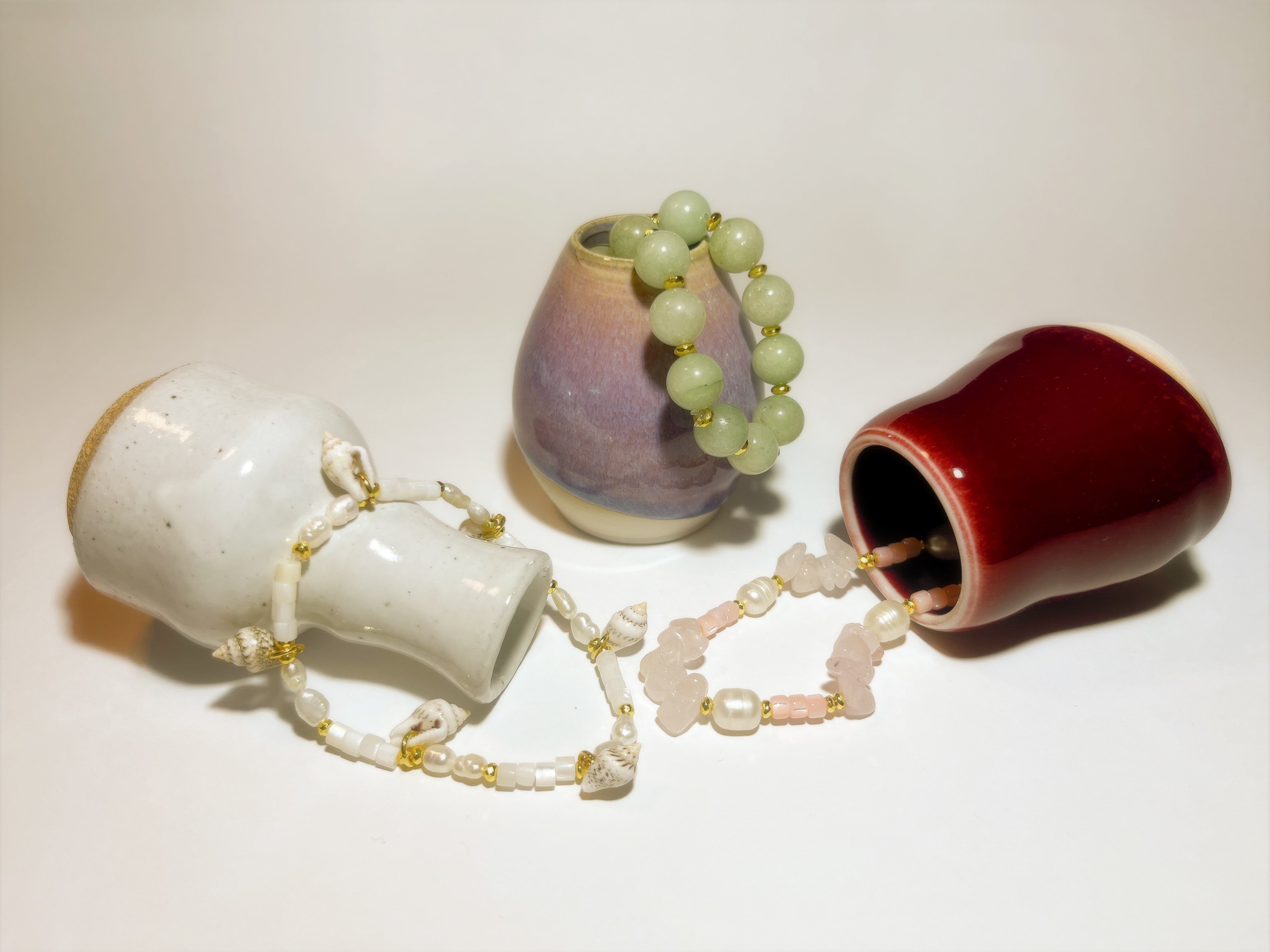 Each jewelry item showcases the natural beauty of semi-precious stones, designed for elegance.